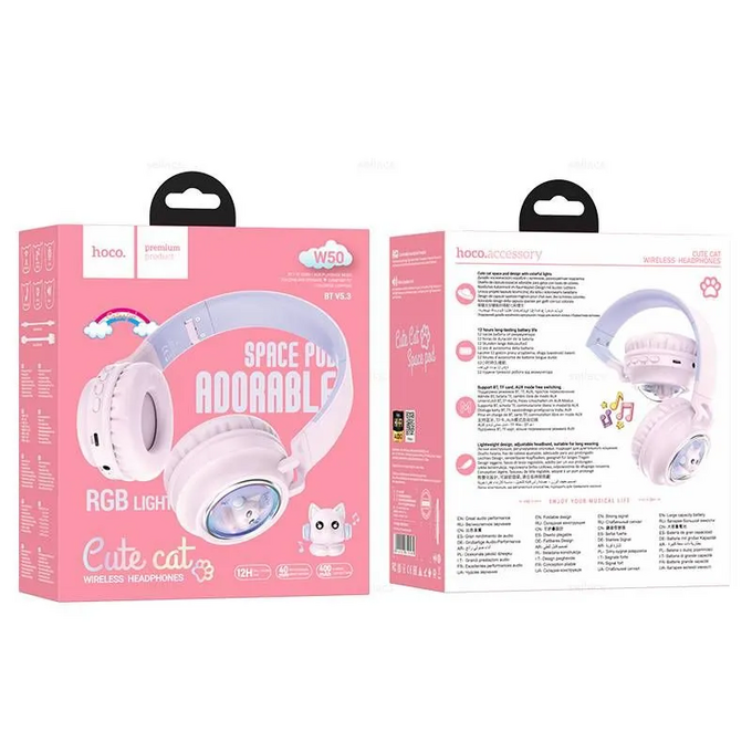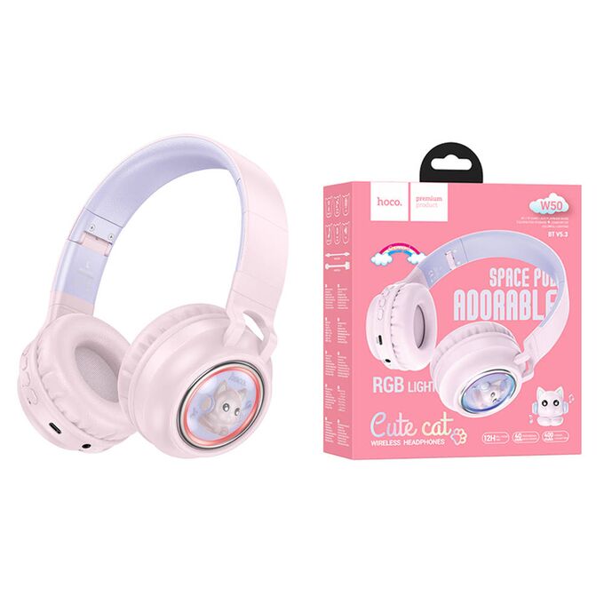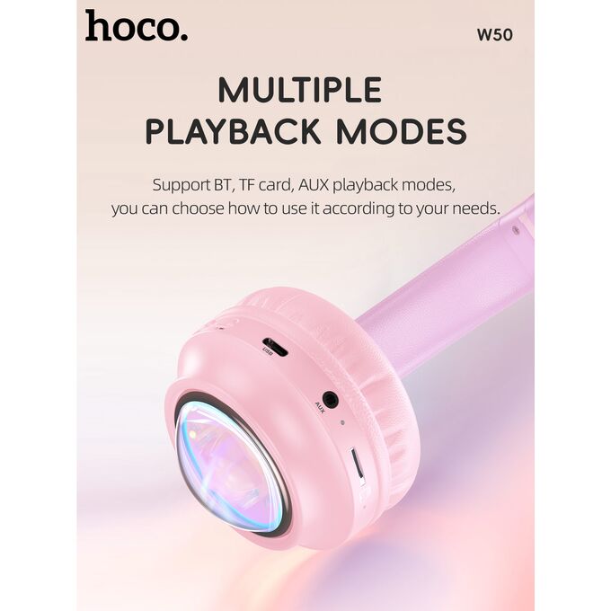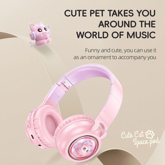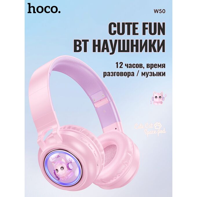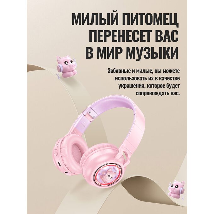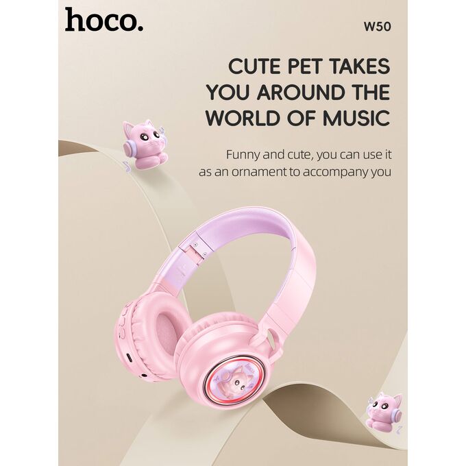 Наушники полноразмерные bluetooth HOCO W50 Cute fun BT (розовый)