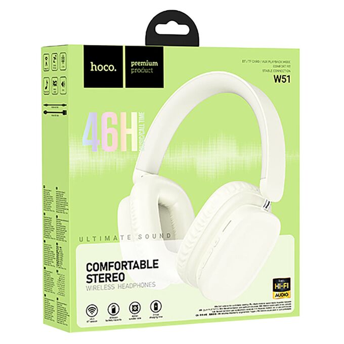 Наушники полноразмерные bluetooth HOCO W51 Delightful BT (белый)