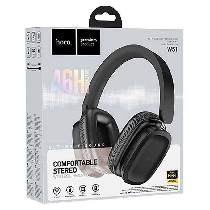 Наушники полноразмерные bluetooth HOCO W51 Delightful BT (черный)