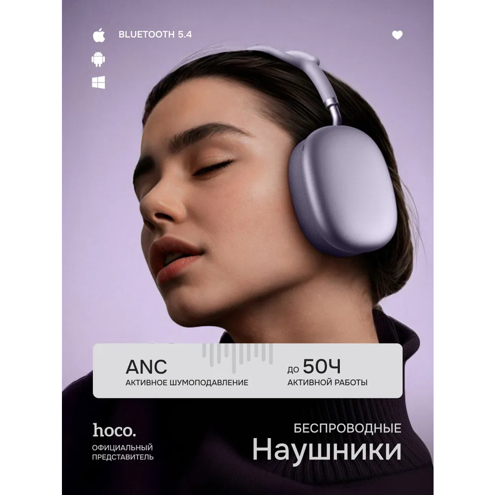 Наушники полноразмерные bluetooth HOCO W65 Plus Happy ANC (фиолетовый)