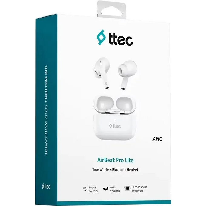 Наушники TTEC 2KM155B AirBeat Pro Lite ANC TWS Bluetooth Headset White