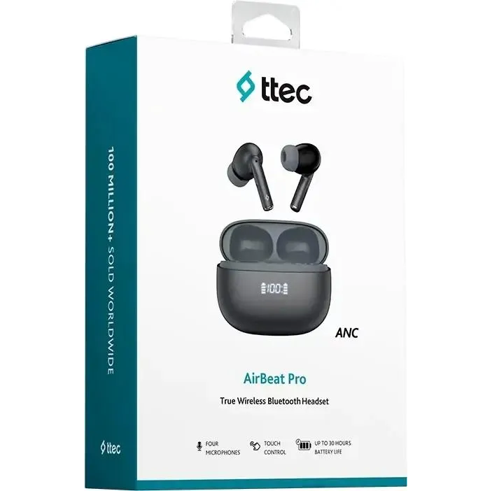 Наушники TTEC 2KM159S AirBeat Pro ANC LCD TWS Bluetooth Headset Black
