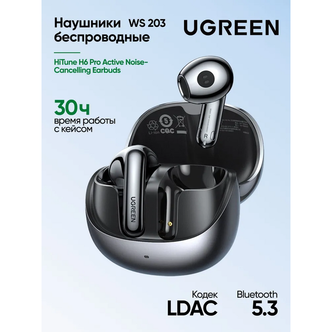 Наушники UGREEN WS203 (35194) HiTune H6 Pro Active Noise-Cancelling Earbuds Silver