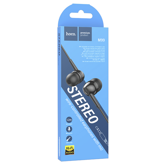 Наушники Hoco M99 отличный универсальный аксессуар. Стильные и удобные наушники с микрофоном и штекером 3,5 миллиметров. Кабель имеет оптимально комфортную длину 1,2 м. Наушники исправно работают со всеми системами и ПО. С помощью функциональной кнопки можно управлять воспроизведением музыки (пауза), отвечать на звонок, переключаться между треками (следующая и предыдущая песня).