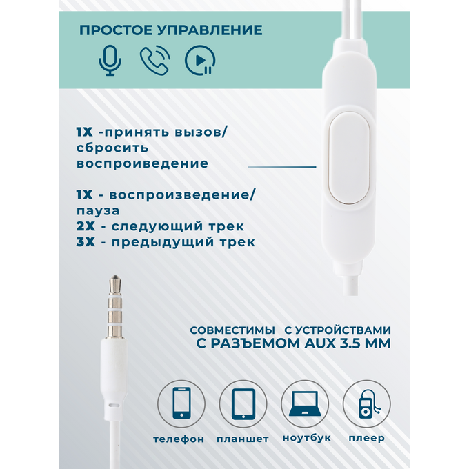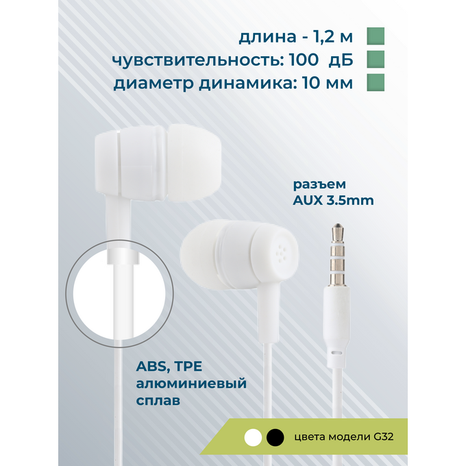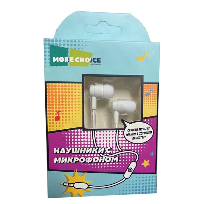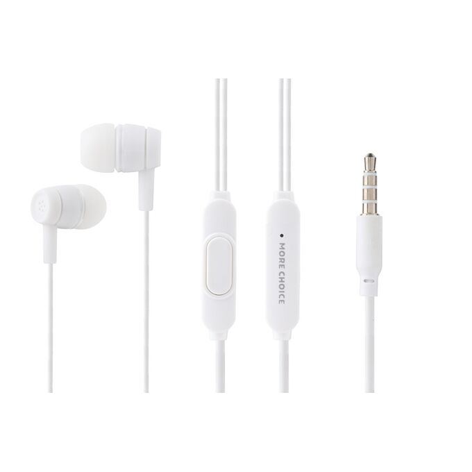 Наушники вакуумные AUX разъём с МК без рег.громкости длина 1.2м More Choice G32 (White)