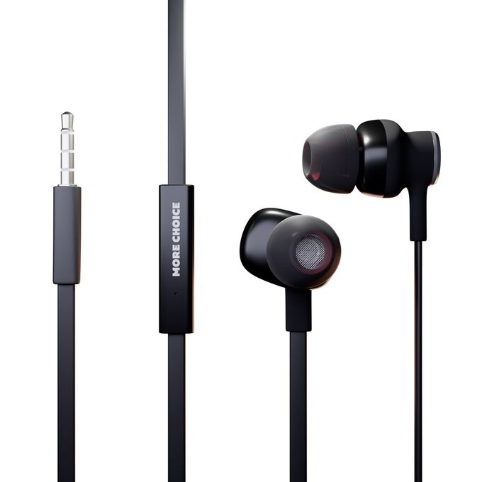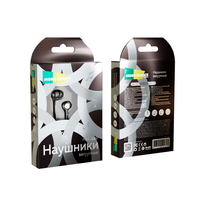 Наушники вакуумные AUX разъём с МК без рег.громкости длина 1.2м More choice P42 (Black Silver)
