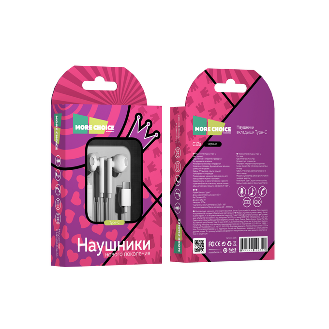 Наушники вкладыши Type-C разъём с МК и рег. громкости длина 1.2м More choice G12 (White)