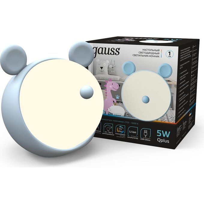 Настольный светильник ночник Gauss qplus модель gtl702 5w 200lm 2700-6000k 5v li-ion 1200ma голубой NN7026 выполнен из мягкого и безопасного материала. Оснащен Li-ion аккумулятором, что позволяет с легкостью переносить и использовать его в удобном для ребенка месте в течение длительного времени. Зарядка аккумулятора осуществляется от шнура с USB разъемом идущего в комплекте.