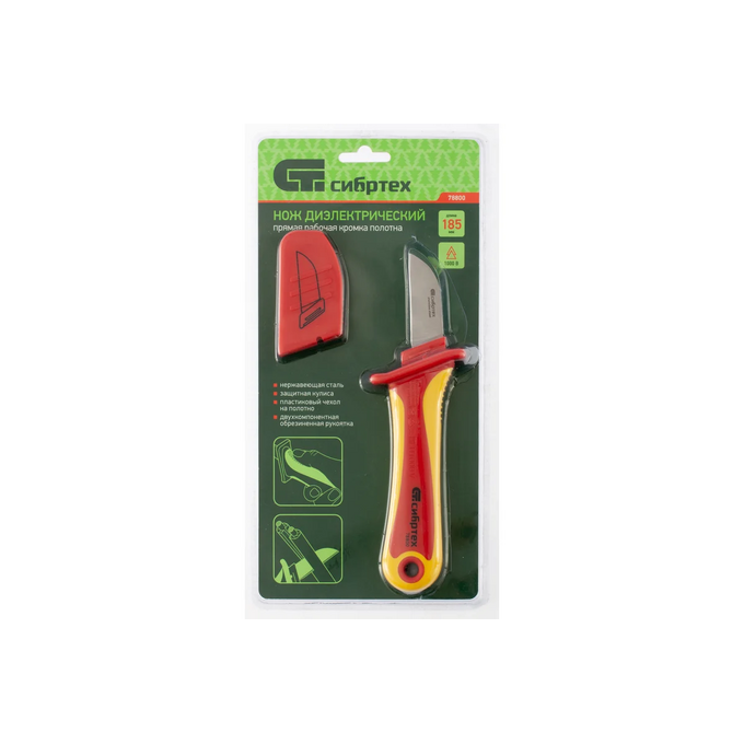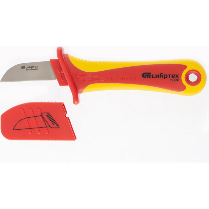 Диэлектрический нож до 1000 В с прямой рабочей кромкой полотна Сибртех 78800 будет полезен при проведении электромонтажных работ. С его помощью можно снять изоляцию с кабеля и зачистить электрожилы. За счет прямого лезвия он легко снимает даже толстую оболочку. Использовать нож необходимо с соблюдением всех требований технической безопасности, перед выполнением работ требуется отключить напряжение.