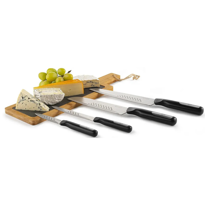 Материал клинка: высококачественная нержавеющая сталь X30Cr14. Материал рукоятки: комбинированная: ударопрочный пластик и нержавеющая сталь. Преимущества: лезвия ножей с эффектом anti-stick - продукты не прилипают к лезвию в процессе их нарезки. Использование: не подходит для посудомоечной машины.
