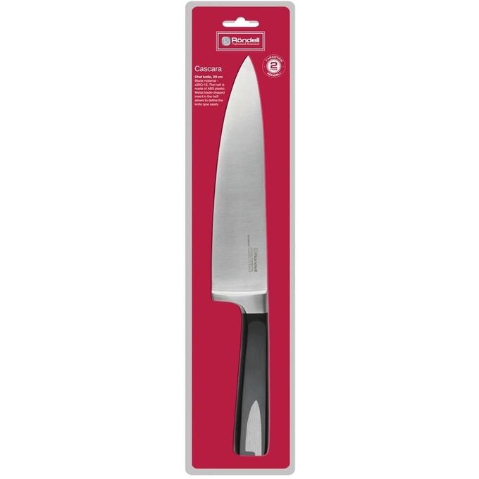 Нож кухонный Rondell Cascara RD-685 стальной поварской лезв.200мм прямая заточка черный блистер