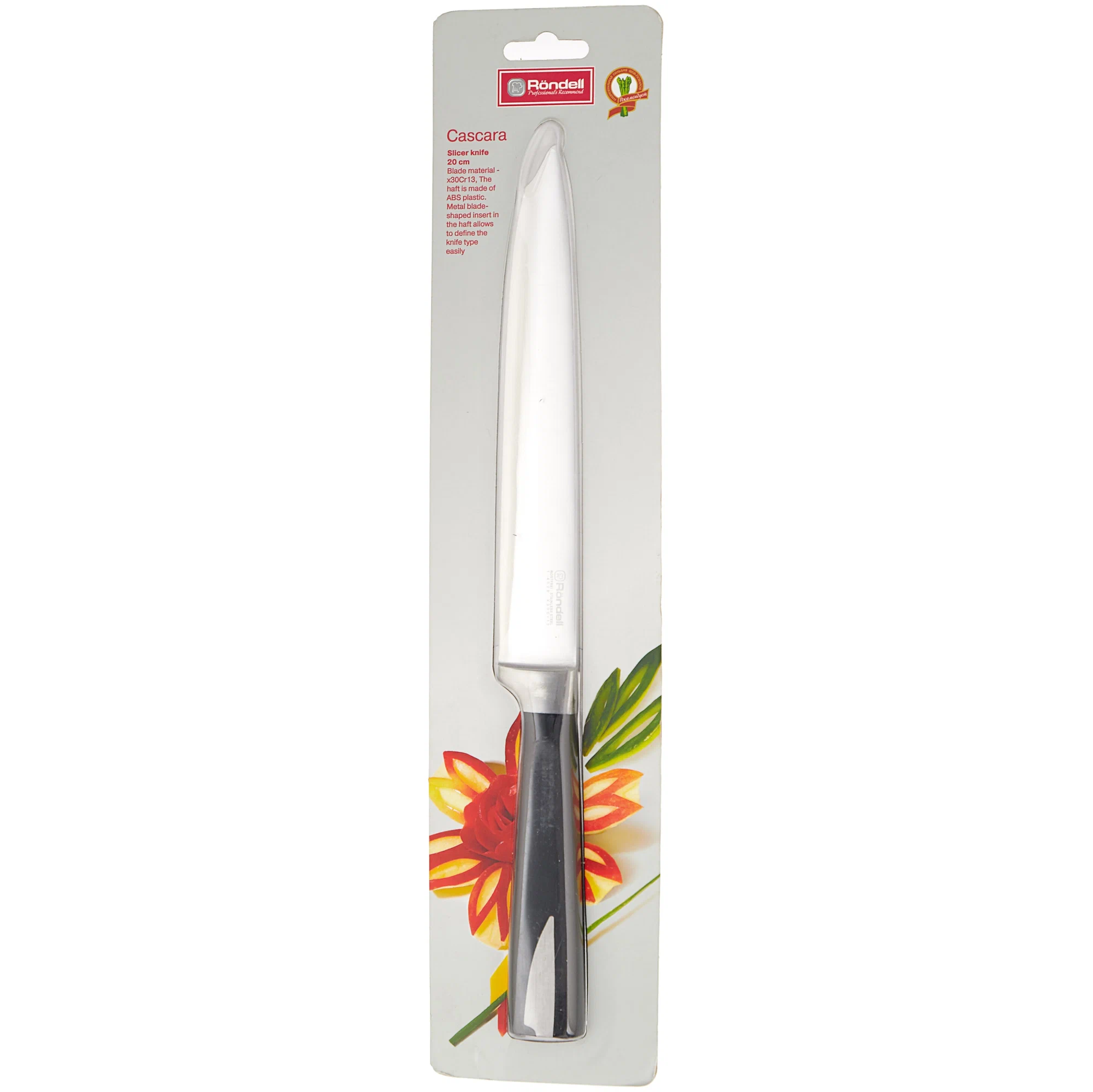 Нож кухонный Rondell Cascara RD-686 стальной разделочный лезв.200мм прямая заточка черный блистер