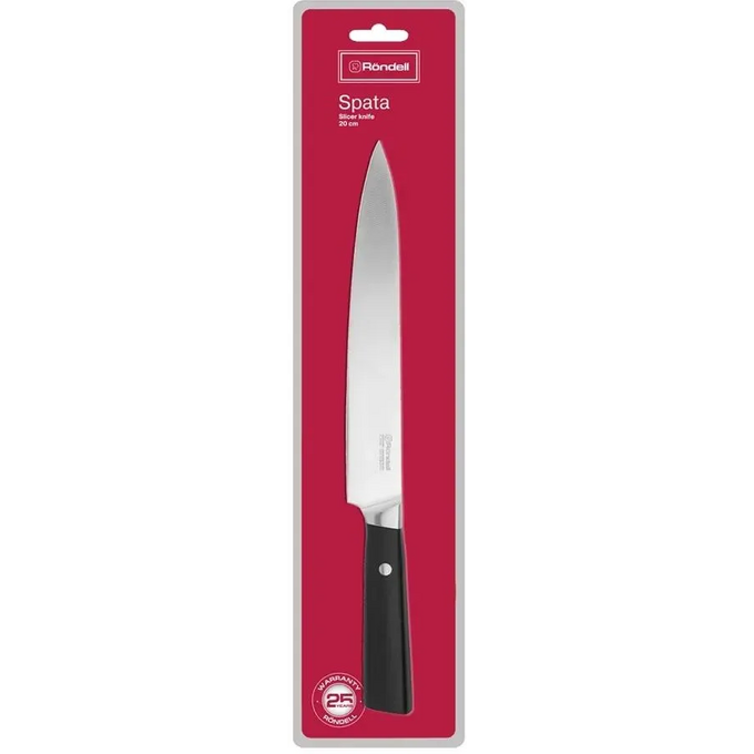 Нож кухонный Rondell Spata RD-1136 стальной разделочный лезвие 200мм прямая заточка черный блистер
