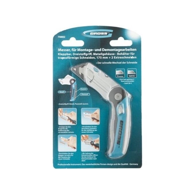Нож ремонтно-монтажный складной GROSS 78882 175мм трехкомпонентная рукоятка, 2 зап.лезвия