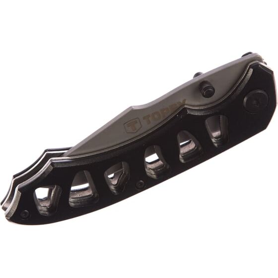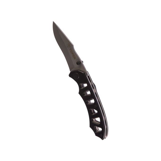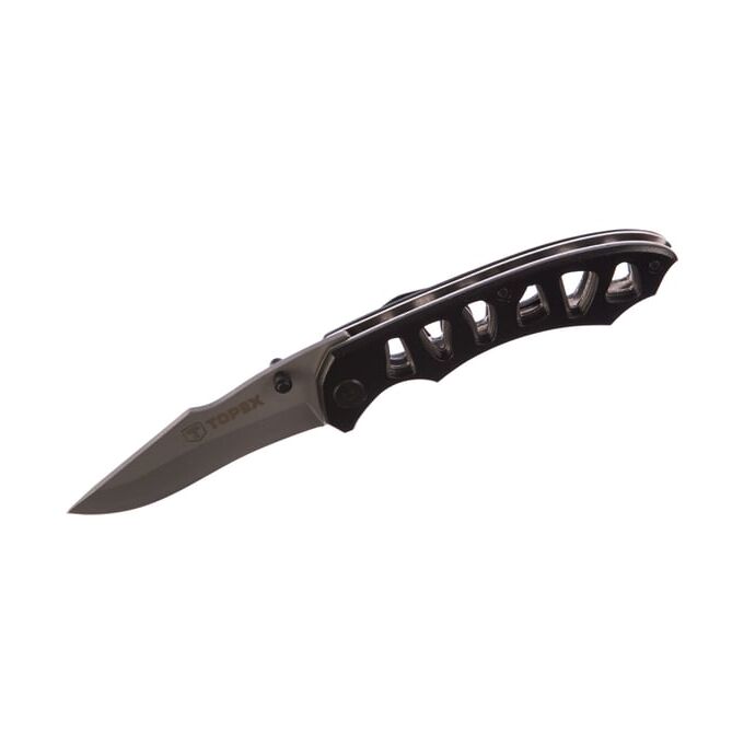 Складной нож с фиксатором TOPEX 98Z107 пригодится как в походе, так и в быту. Наличие специального курка предохраняет лезвие от складывания. Корпус ножа изготовлен из анодированного алюминия, что обеспечивает высокую прочность. Имеется клипса для крепления на ремень. Длина изделия в сложенном состоянии составляет 113 мм.
