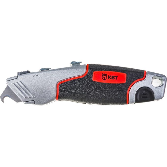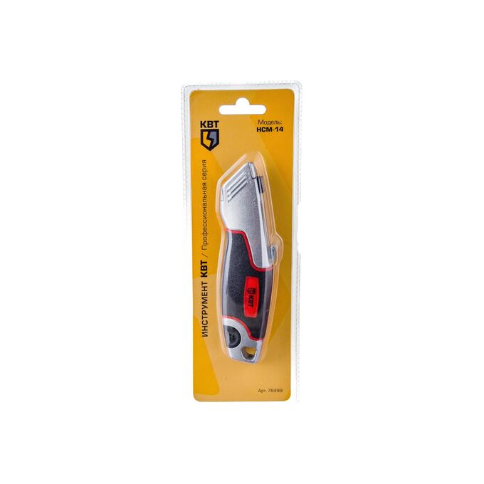 Нож строительный монтажный КВТ НСМ-14 78499 используется для разрезания тонких материалов: картона, пластика, бумаги, резины. Оснащен двумя направляющими для лезвий, конструкция которых исключает одновременное выдвижение двух лезвий. Для комфорта пользователя предусмотрен прорезиненный упор для большого пальца и противоскользящие вставки на корпусе. Есть механизм быстрой смены лезвий и отверстие для подвешивания.