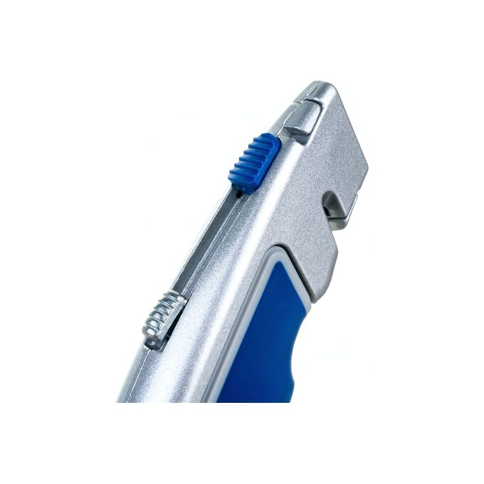 Технический нож, трапециевидные лезвия 19мм 6шт, металлический корпус, быстрая смена лезвия КОБАЛЬТ 242-076 используется для резки тонких материалов, не плотной текстуры, например: бумаги, картона, резины, пластика, линолеума и пр. Изделие имеет прочный металлический корпус с прорезиненной накладкой в зоне обхвата ладонью. В конструкции предусмотрена кнопка быстрой смены лезвия и стропорез.