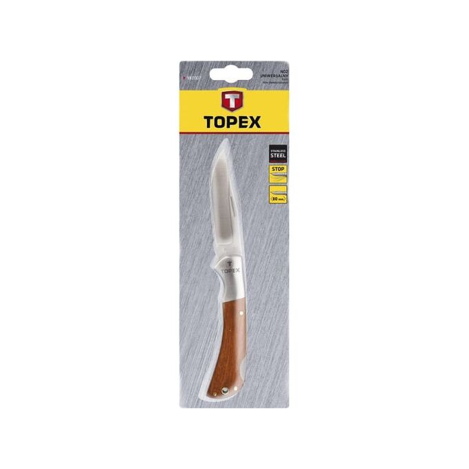 Нож универсальный TOPEX 98Z007 лезвие 80мм, складной, нержавеющее лезвие и корпус, фиксация лезвия, деревянные накладки