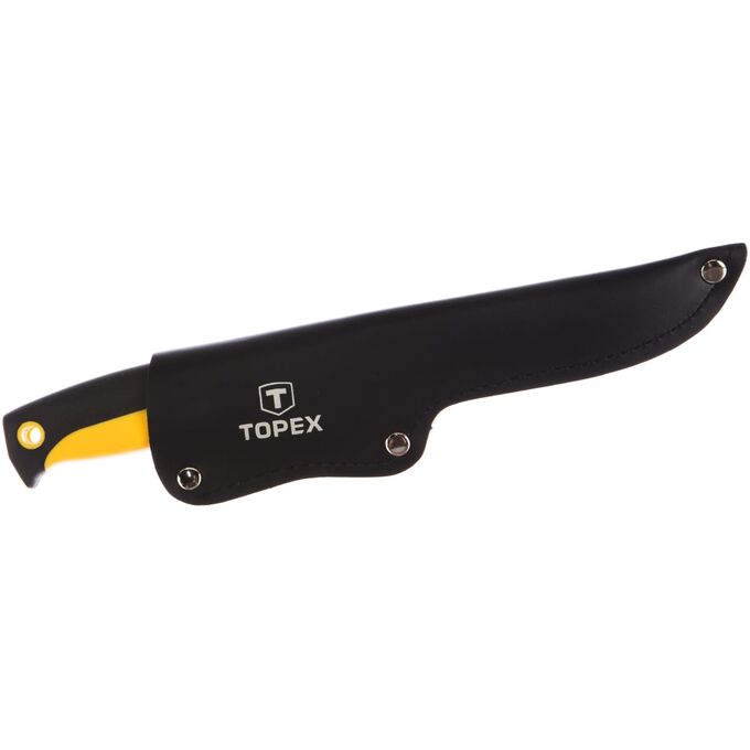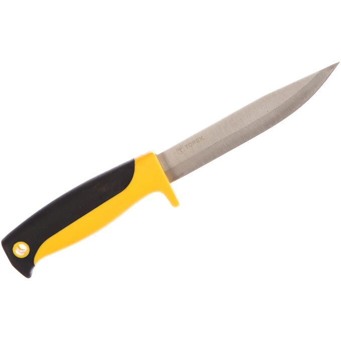 Нож универсальный лезвие 120 мм TOPEX 98Z103 имеет широкую сферу использования. Инструмент служит длительное время, благодаря лезвию из нержавеющей стали. Рукоятка изготовлена из пластмассы и покрыта антискользящим материалом, с помощью чего изделие удобно располагается в руке при эксплуатации. Кожаная кобура обеспечивает надежную транспортировку и хранение.