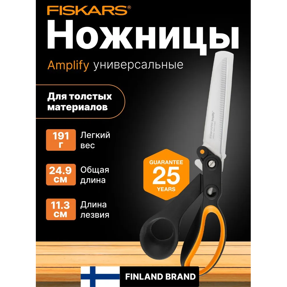 Ножницы высокой производительности Fiskars 24 см 1020223 позволяют разрезать плотные материалы благодаря технологии Amplify. Длинные лезвия с зазубриванием выполнены из высококачественной стали. Рабочая часть долго остается острой. Эргономичные пластиковые рукоятки обладают большой петлей.