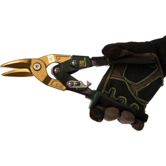 ожницы по твердому металлу, двойная рычажная передача, Cr-Mo, титановое покрытие, двухкомпонентная ручка, правые, усиленный ручной режущий инструмент для работы с твердым листовым металлом.