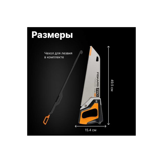 - Ножовка по дереву Fiskars PowerTooth 380 мм 9 зубьев на дюйм 1062930 имеет лезвие с тройной шлифовкой для более быстрых и мощных пропилов.
