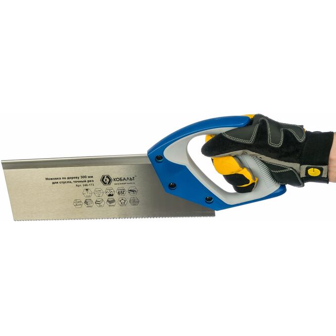 Ножовка по дереву КОБАЛЬТ 300 мм, для стусла, шаг 2 мм/ 12 TPI, закаленный зуб, 2D-заточка, двухкомпонентная рукоятка, точный рез (246-173)