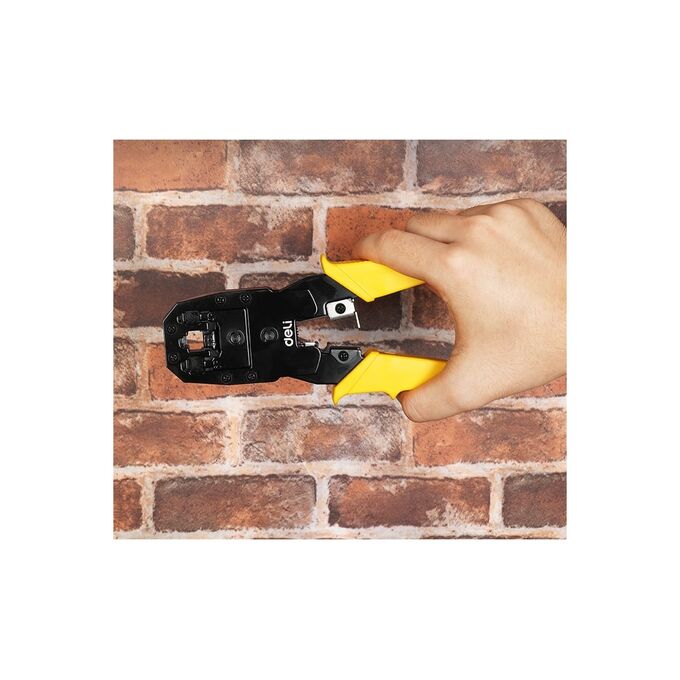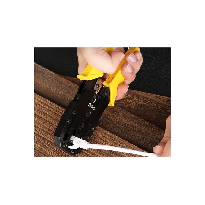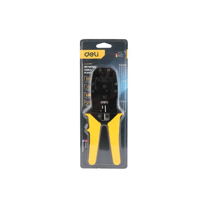 Обжимные клещи - незаменимый инструмент для профессионалов и любителей, которые ищут надежное и удобное решение для обжима различных коннекторов. Клещи изготовлены из холоднокатаного стального листа углеродистой стали с чёрной отделкой. Материал обладает высокой прочностью и долговечностью. Благодаря пластиковой, ребристой ПВХ-ручке с упором для пальца снижается усталость кисти при работе с инструментом. DL2468C обладают впечатляющим функционалом и высокой производительностью, позволяющими без труда работать с коннекторами 8P (RJ-45), 6P (RJ-14 и RJ-12) и 4P (RJ-9).