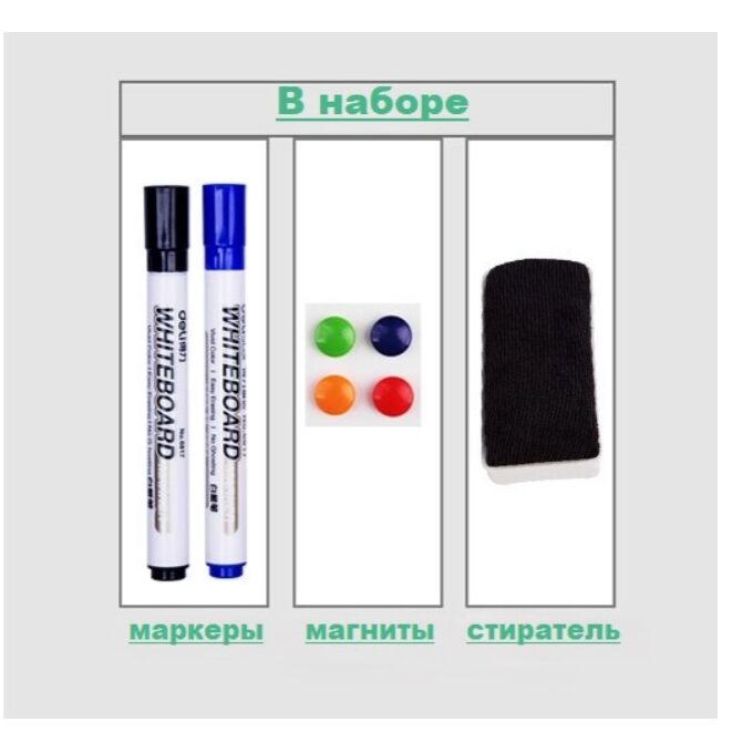 Комплектация 2 маркера, 4 магнита, полка для маркеров, щетка