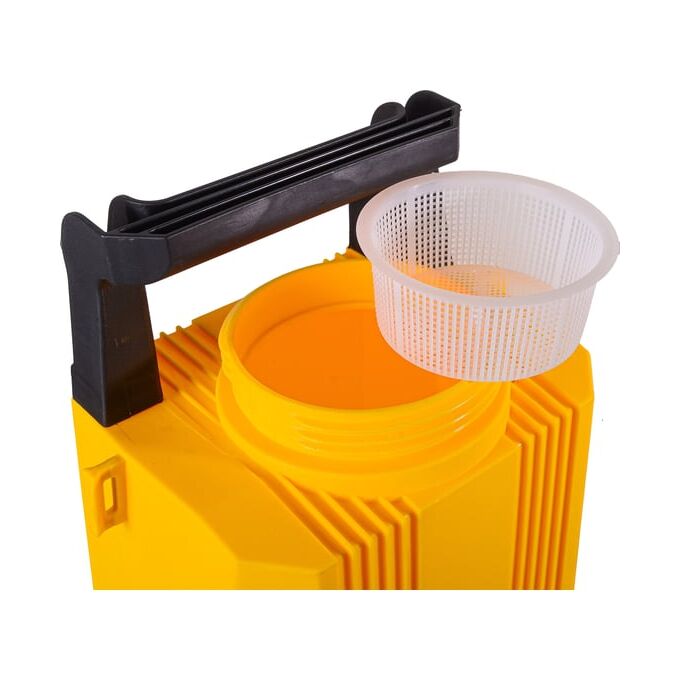 Регулятор давления позволяет управлять дальностью распыления в пределах 6 м. Опрыскиватель аккумуляторный имеет эргономичную форму, компактные размеры, весит 2,8 кг. Его удобно носить на плечевых ремнях за спиной. Прочный пластик пригоден для использования удобрений, пестицидов, дезинсекционных, дезинфицирующих, моющих средств и других жидкостей.