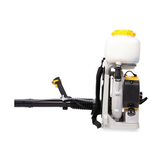 Опрыскиватель-распылитель оснащен двигателем мощностью 2.6 кВт и предназначен для обработки садовых насаждений, защиты растений от вредителей и распыления удобрений.