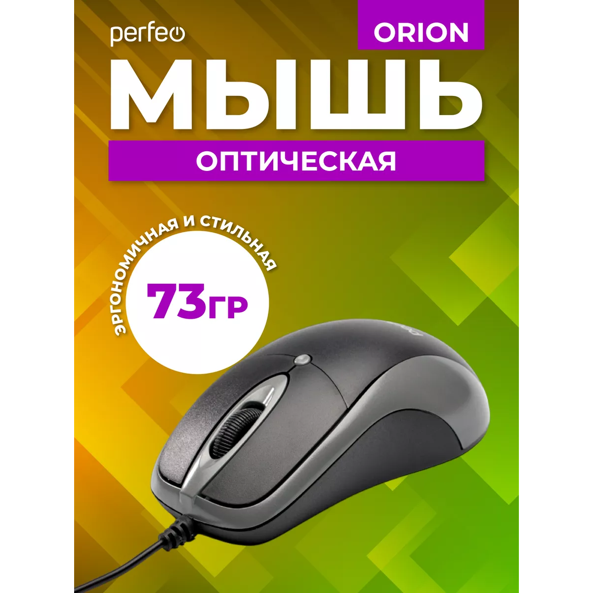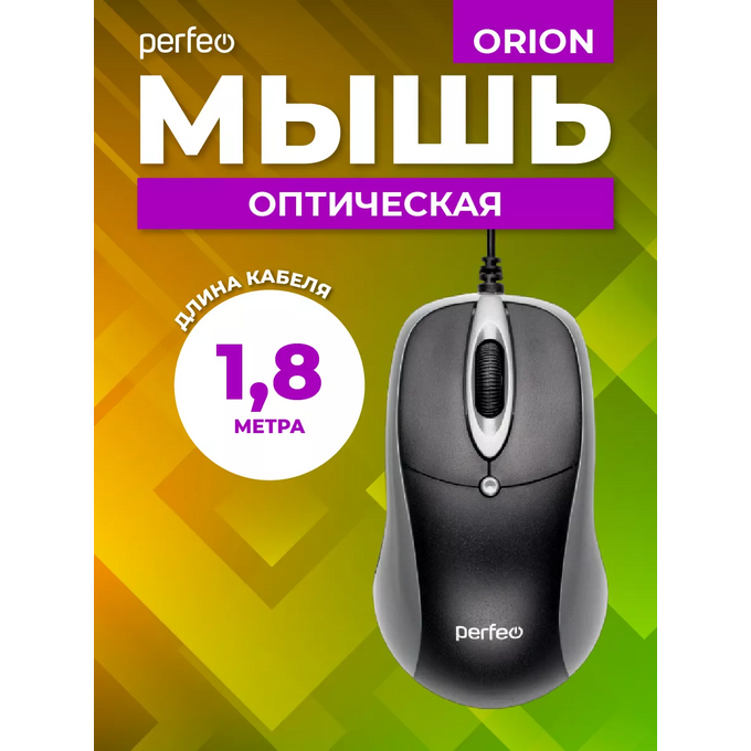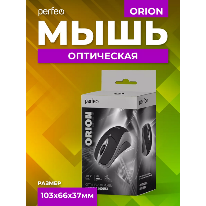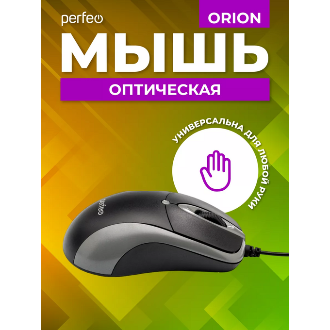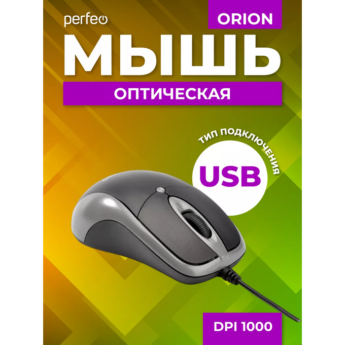 Оптическая мышь Perfeo "ORION", 3 кн, DPI 1000, USB, чёрный/серый