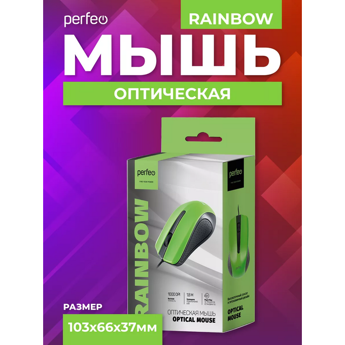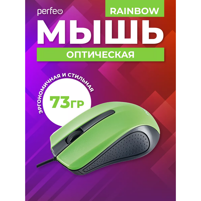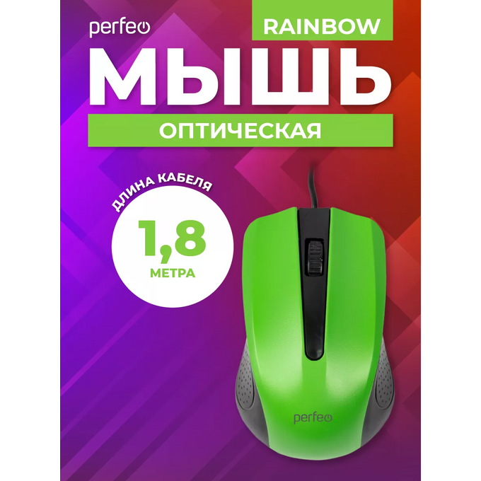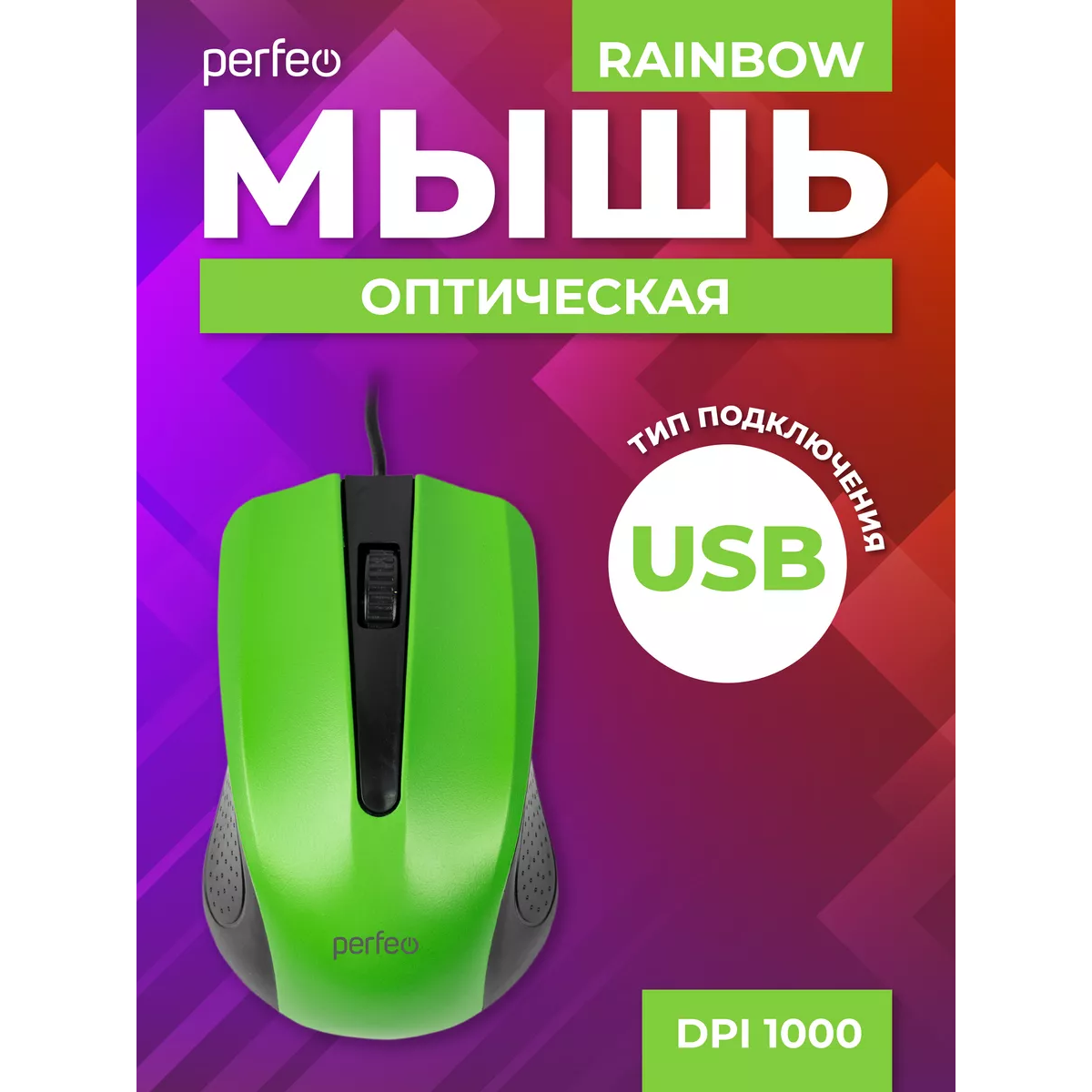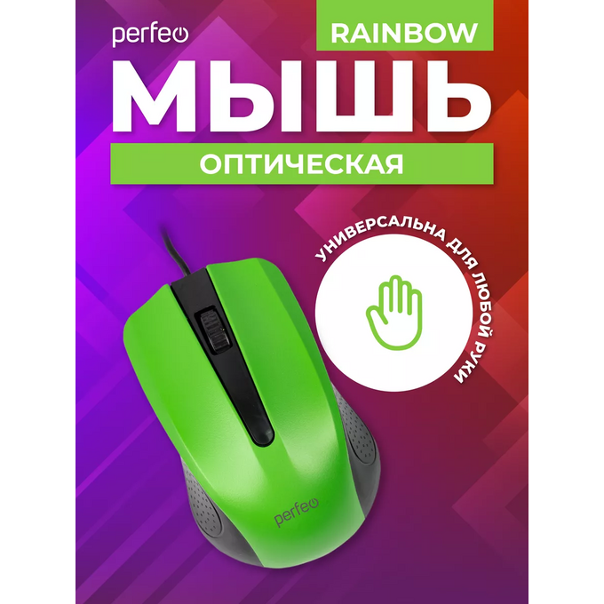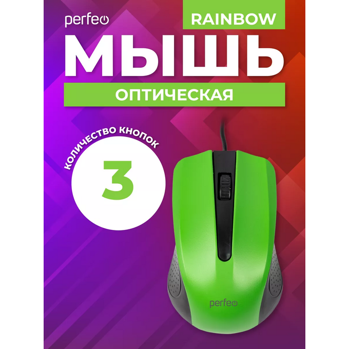 Оптическая мышь Perfeo "RAINBOW", 3 кн, USB, чёрный/зелёный
