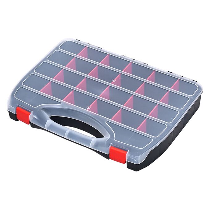 Благодаря использованию прозрачной крышки можно быстрее находить необходимый крепеж. Секции легко регулируются по длине.