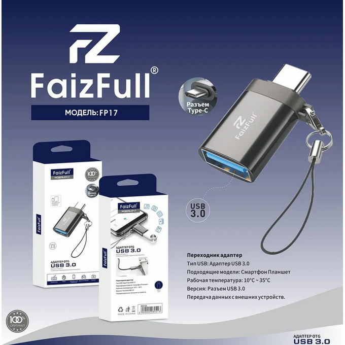 OTG переходник FaizFull FP17 OTG Type-C to USB Черный
