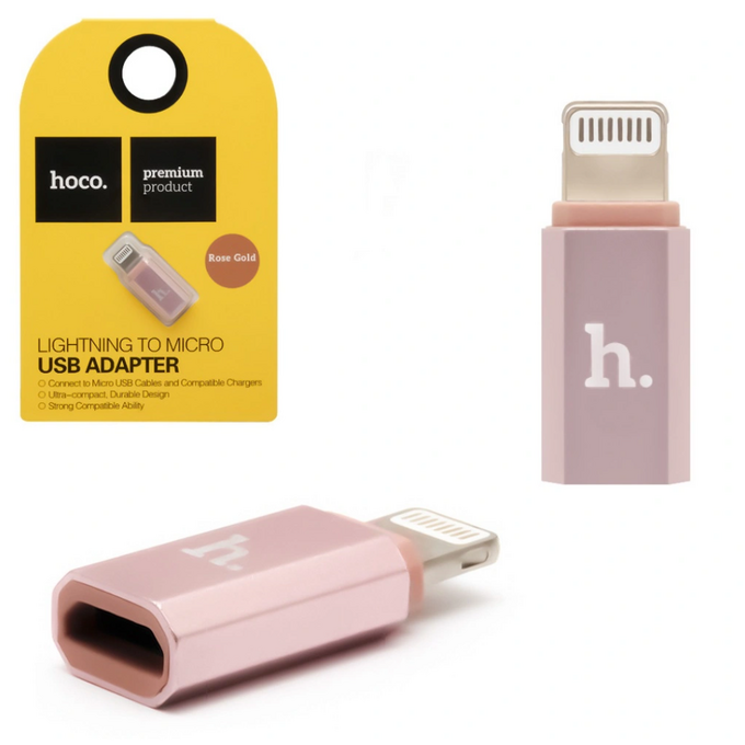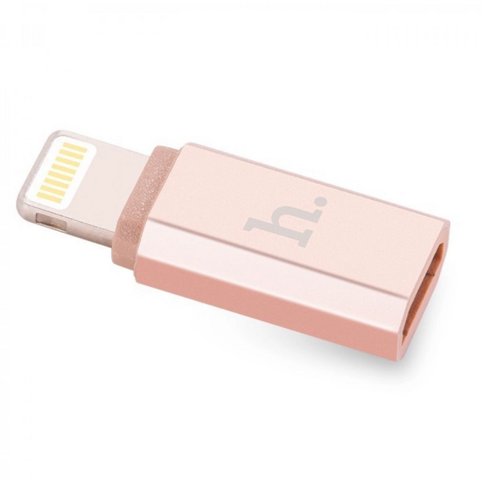 OTG переходник HOCO Micro USB to Lightning connector розовое золото