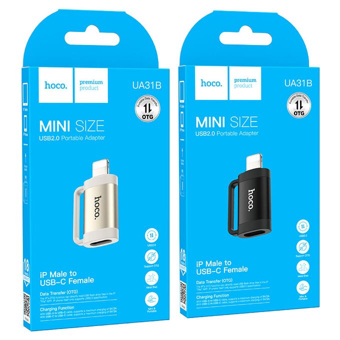 OTG переходник HOCO UA31B iP male to Type-C female OTG adapter (серый)