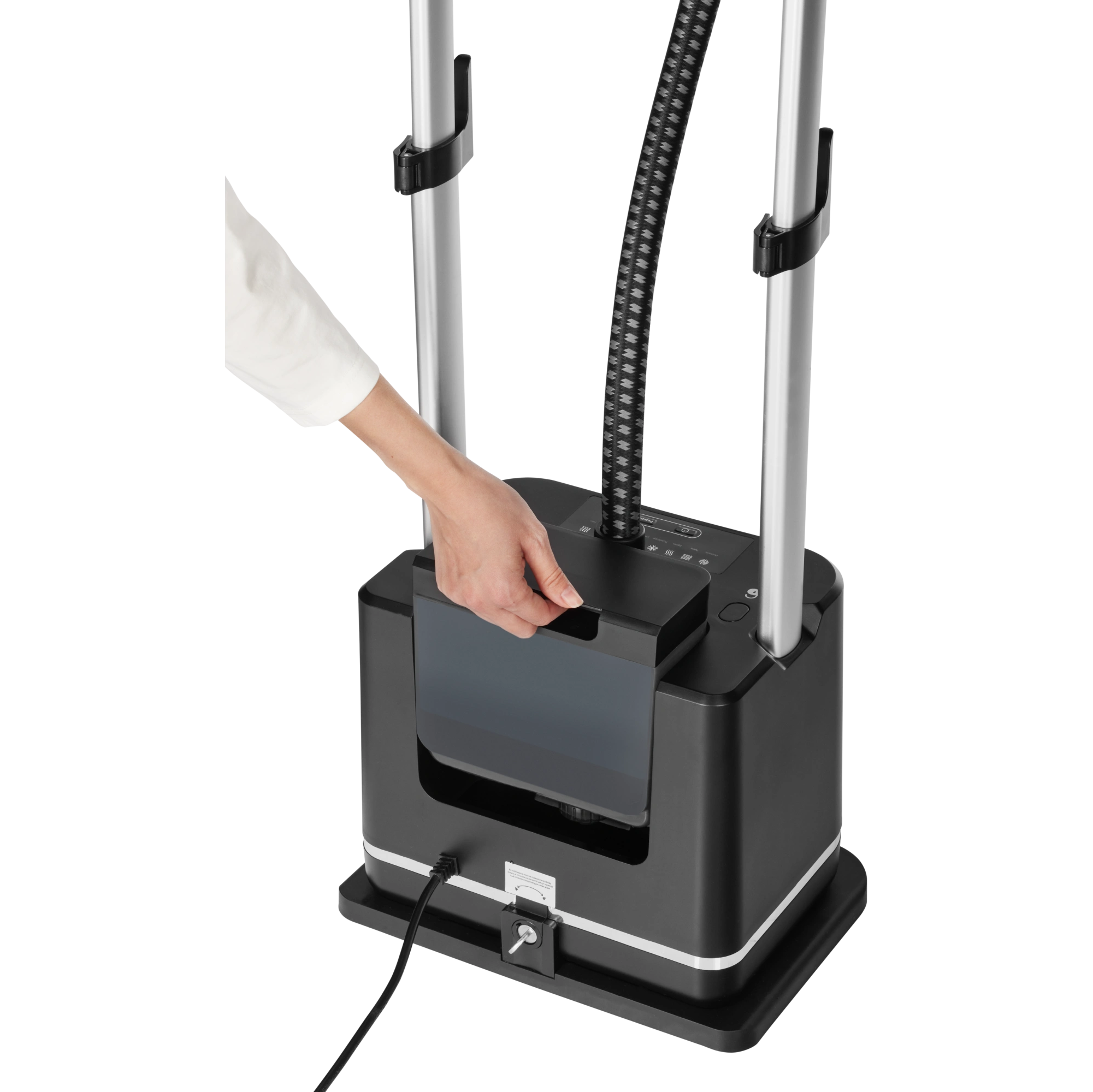 Кнопка управления паром на утюжке и панель управления на корпусе вертикального отпаривателя для одежды обеспечивают простоту и гибкость в работе, позволяя вам без труда контролировать процесс глажения с максимальным комфортом. Металлическая подошва легко скользит по ткани, эффективно распределяя пар. Резервуар объемом 2,1 литра и нагрев утюжка за 32 секунды позволяет начать гладить практически мгновенно и продолжать работу до 60 минут – идеальный выбор для большого количества вещей.