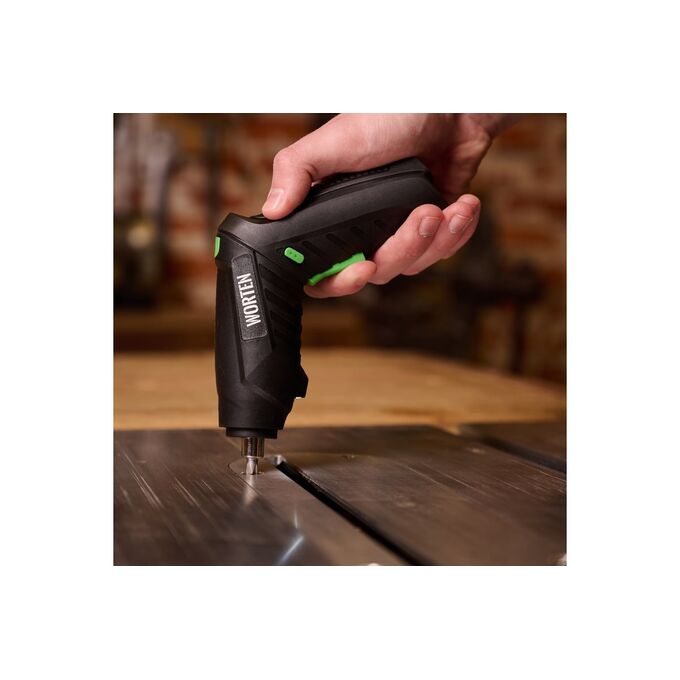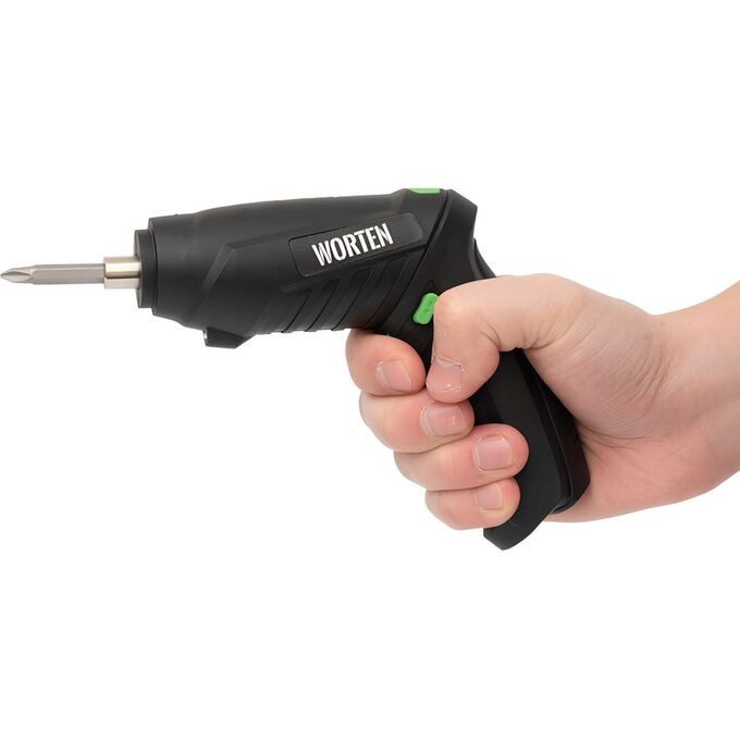 Аккумуляторная отвертка WORTEN 1АКБ, с набором бит 31 предмет— это компактный и мощный инструмент для выполнения широкого спектра задач. Она оснащена встроенным аккумулятором Li-lon на 4 В и ёмкостью 1,3 А*ч, что обеспечивает автономность и удобство в использовании. Её угловая форма корпуса и вес всего 0,6 кг делают её идеальной для работы в труднодоступных местах. Набор отверток с насадками идеальное решение для различных видов работ, включая работу с крепежными элементами даже в самых труднодоступных местах.Компактная и эргономичная, отвертка обеспечивает удобство и точность в каждом движении.В комплекте с электрической отверткой поставляется 31 насадку, что позволяет выполнять широкий спектр задач: от закручивания корпусных винтов до работы с различными шурупами и саморезами. Этот набор отверток делает инструмент универсальным помощником для выполнения мелких и крупных ремонтов, а также монтажа оборудования. Благодаря функции реверса, вы сможете легко изменять направление вращения, что упрощает процесс закручивания и откручивания винтов.