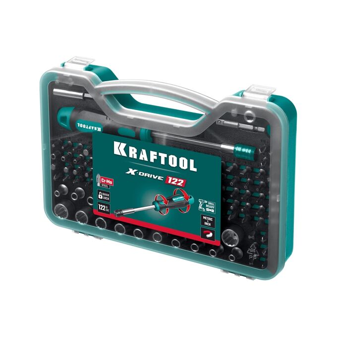 Отвертка-битодержатель KRAFTOOL X-drive-122 (26816) с насадками 122 шт.