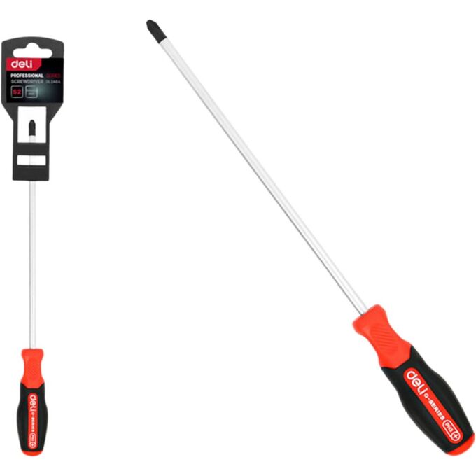Отвертка крестовая DELI DL3464 PH3x200мм сталь S2, матовый стержень, двухкомпонентная прорезиненная рукоять
