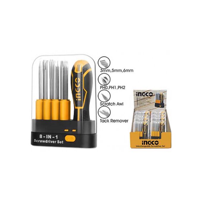 Отвертка наборная Ingco AKISD0901 с битами (9 шт)