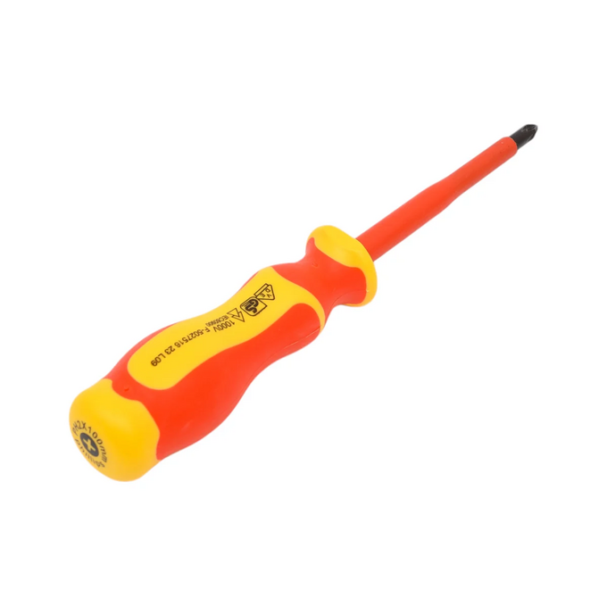 NEO Tools Отвертка PH2 x 6 x 100 mm 1000 В 04-139 сертифицирована для работы под напряжением до 1000 В. Стержень отвертки изготовлен из прочной S2 стали. Отвертка с намагниченным жалом. Специальная эргономичная форма рукоятки уменьшает нагрузку на ладонь во время работы. Двухкомпонентная рукоятка предотвращает скольжение в ладони, стойкая к воздействию химических веществ, масел и смазок. Надежность продукта подтверждает 25-летняя гарантия.