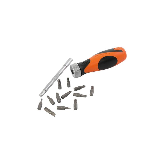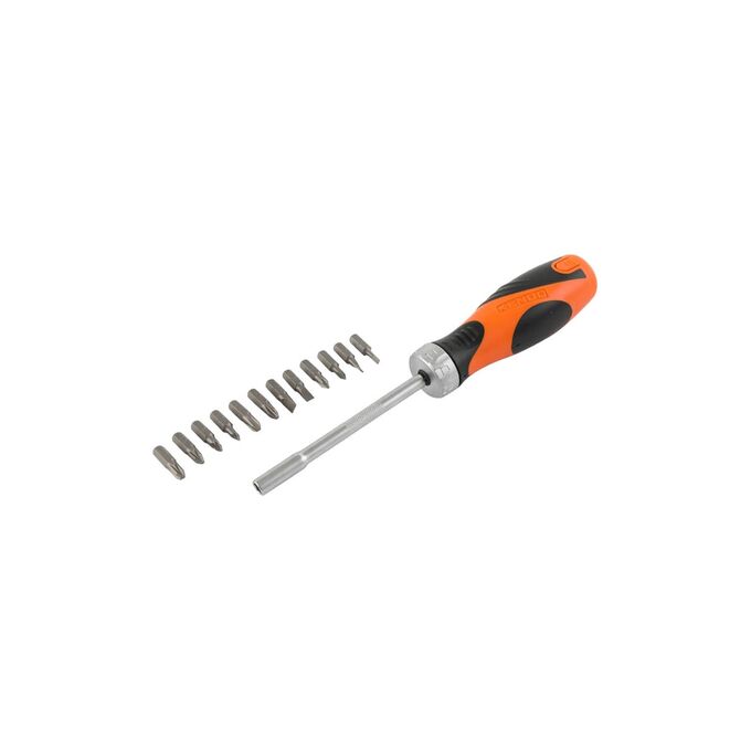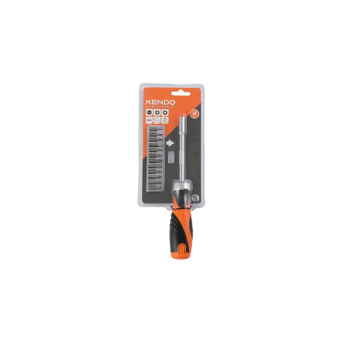 Отвертка с трещоткой KENDO 20016 с набором бит 14 предметов