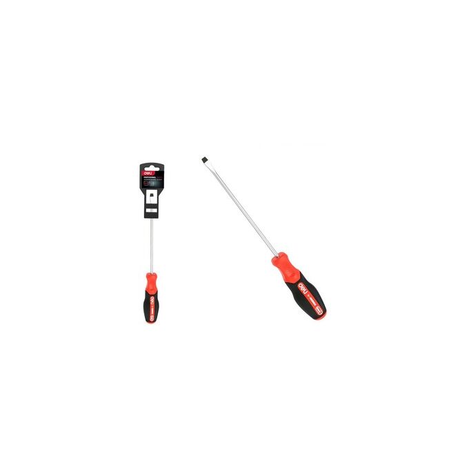 Отвертка шлицевая DELI DL3447 SL6x100мм сталь S2, матовый стержень, двухкомпонентная прорезиненная рукоять