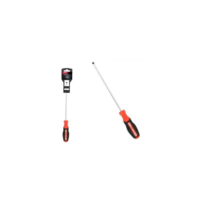 Отвертка шлицевая DELI DL3449 SL6x150мм сталь S2, матовый стержень, двухкомпонентная прорезиненная рукоять