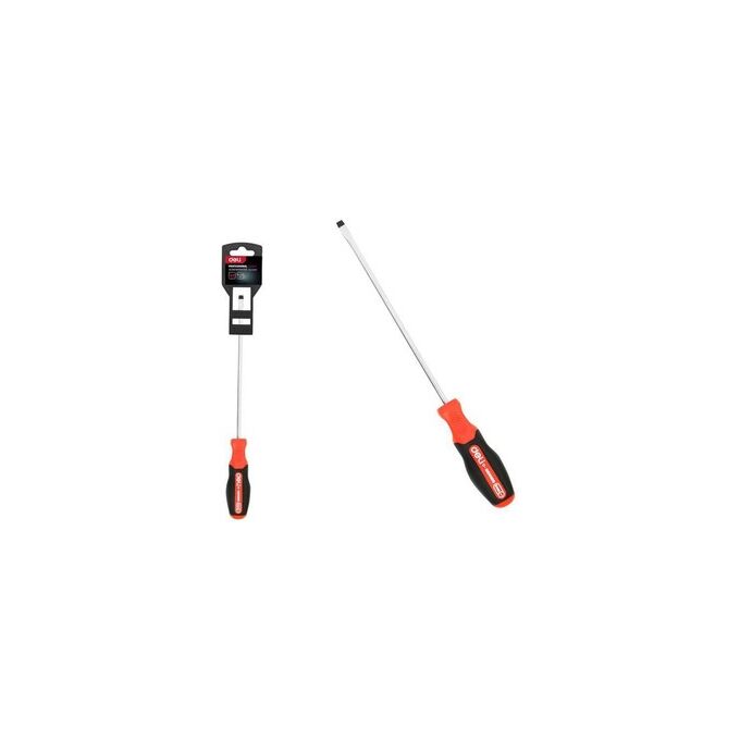 Отвертка шлицевая DELI DL3450 SL6x200мм сталь S2, матовый стержень, двухкомпонентная прорезиненная рукоять