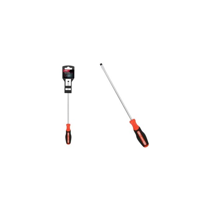 Отвертка шлицевая DELI DL3452 SL8x250мм сталь S2, матовый стержень, двухкомпонентная прорезиненная рукоять