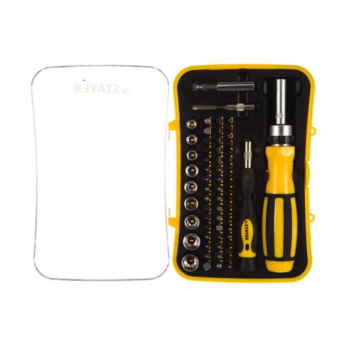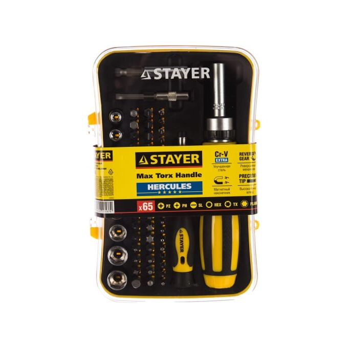 Отвертка STAYER 25310-H65 реверсивная с эргономичной ручкой, с насадками, 65 предм