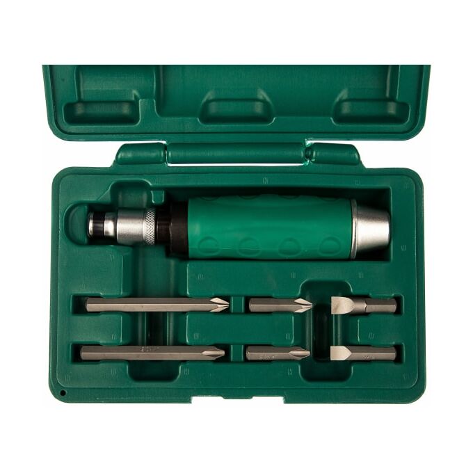 Ударная отвертка с битами предназначена для работы с сильно затянутыми резьбовыми соединениями. Такая отвертка подходит для внутренних рабочих профилей: Slotted или Phillips. Удобная прорезиненная рукоятка обеспечивает надежный захват инструмента.